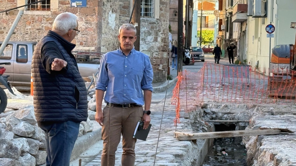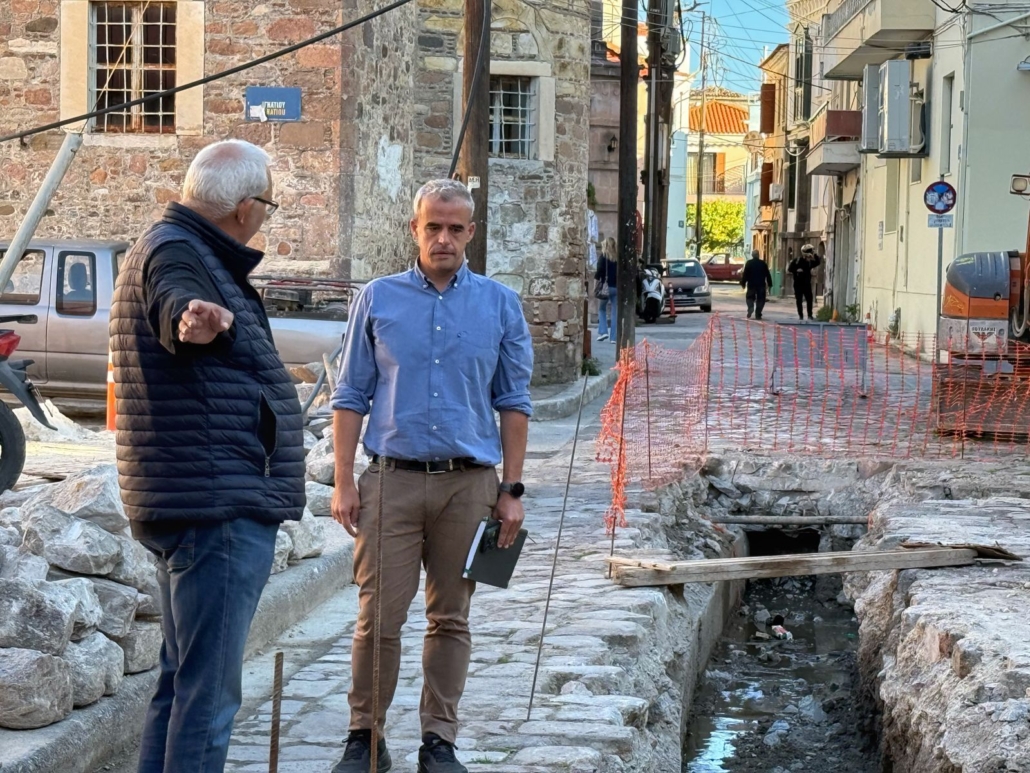 Επίσκεψη του Δημάρχου Μυτιλήνης Παναγιώτη Χριστόφα στο έργο αντικατάστασης των δικτύων ύδρευσης – αποχέτευσης στην παλιά αγορά
