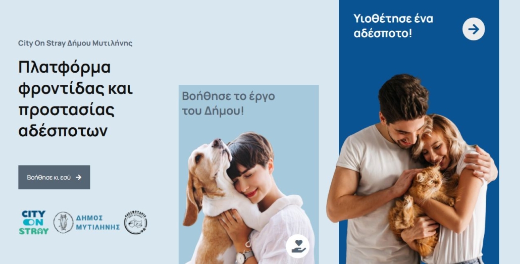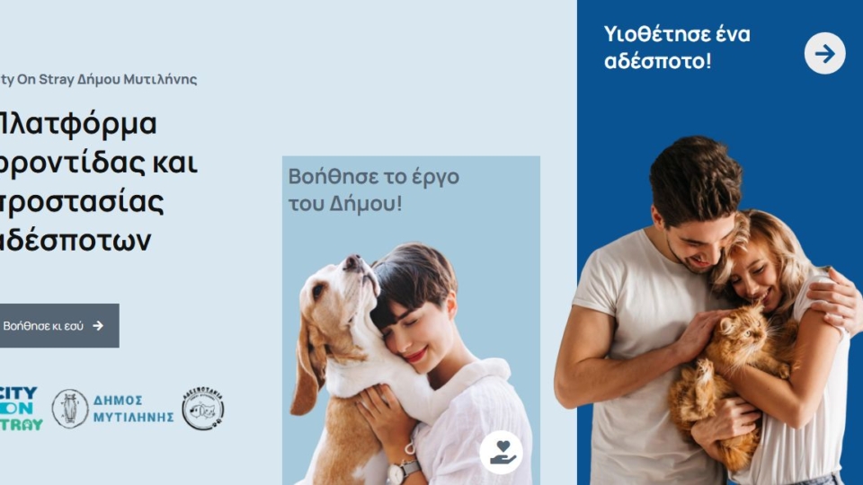 Ξεκινά τη λειτουργία της η ψηφιακή πλατφόρμα του Δήμου Μυτιλήνης για την φροντίδα και την προστασία αδέσποτων ζώων συντροφιάς, στη σελίδα https://adespota.mytilene.gr/, με στόχο την ολοκληρωμένη πληροφόρηση των δημοτών και κάθε ενδιαφερόμενου για όλα τα θέματα που αφορούν τα ζώα.