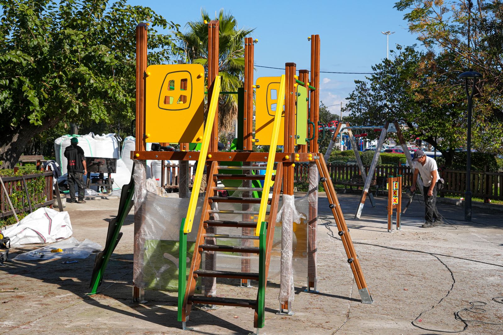 Αυτοψία του Δημάρχου Μυτιλήνης Παναγιώτη Χριστόφα στο έργο ανακατασκευής της παιδικής χαράς στο πάρκο Καραπαναγιώτη