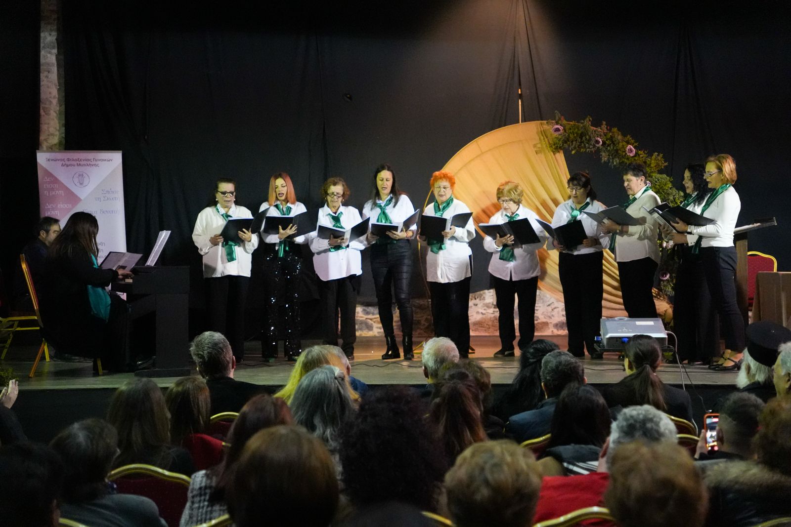 Ο Ξενώνας Φιλοξενίας Γυναικών θυμάτων βίας παρουσίασε βιωματική δράση με τίτλο «Η δύναμη έχει εκπρόσωπο» και η εκδήλωση έκλεισε μουσικά με τραγούδια από την Χορωδία του Παγγεραγωτικού Συλλόγου.
