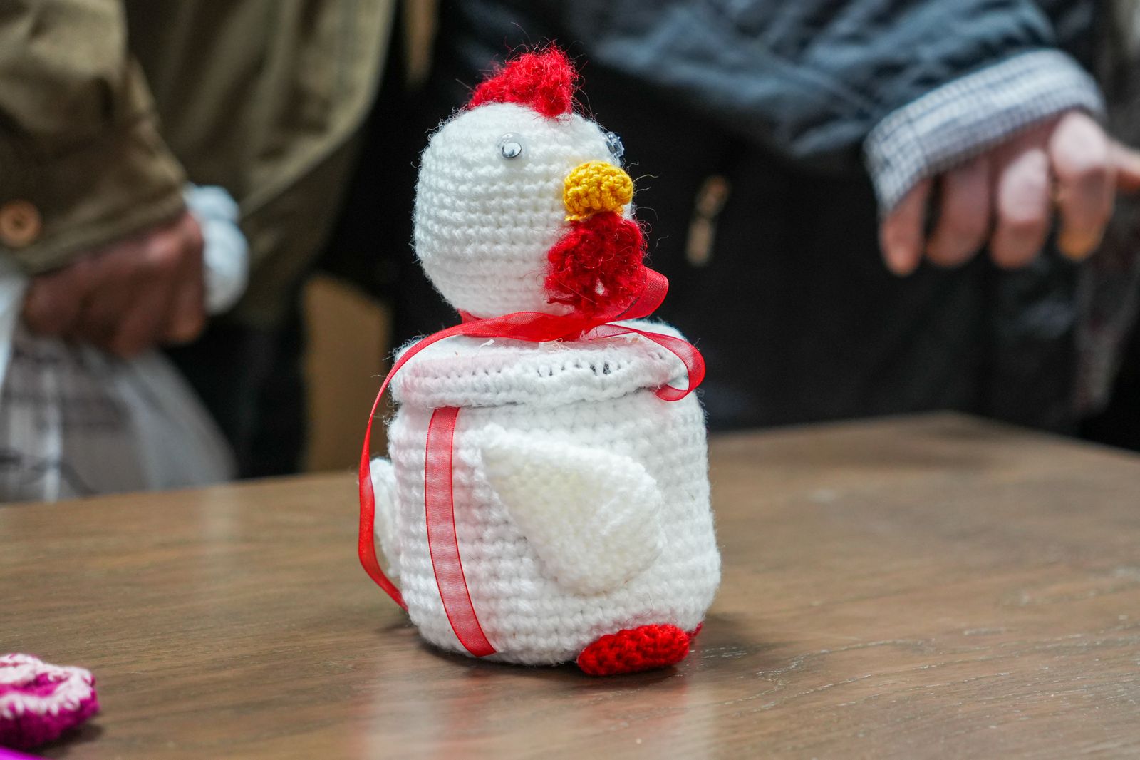 Η Ομάδα Πλεκτικής του Κέντρου χάρισε στον Δήμαρχο χειροποίητα πλεκτά διακοσμητικά δώρα και παραδοσιακά πασχαλινά κουλουράκια, ενώ ο κ. Σπανός μετέφερε επίσης πασχαλινές ευχετήριες κάρτες και κατασκευές παιδιών από τους Παιδικούς Σταθμούς.